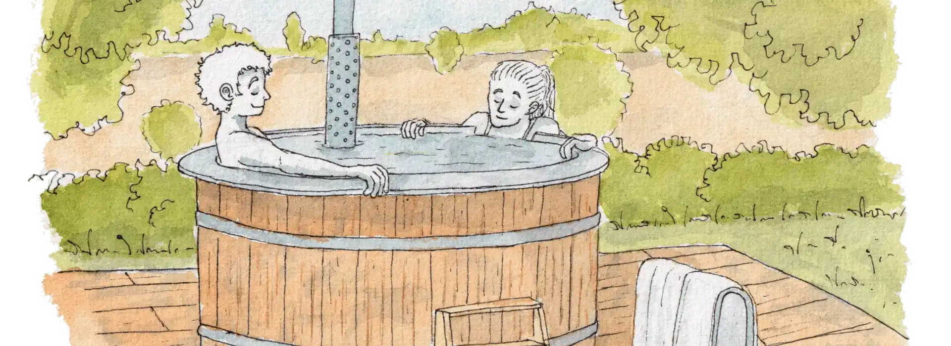 Quand vous serez dans le bain nordique, prenez le temps d'écouter les petits oiseaux gazouiller et de regarder les nervures délicates de chaque feuille, de chaque branche, de chacun des arbres. Quand vous serez plongés dans une eau chauffée, en plein cœur de ce jardin, à n'importe quelle saison, le temps s'arrête.
