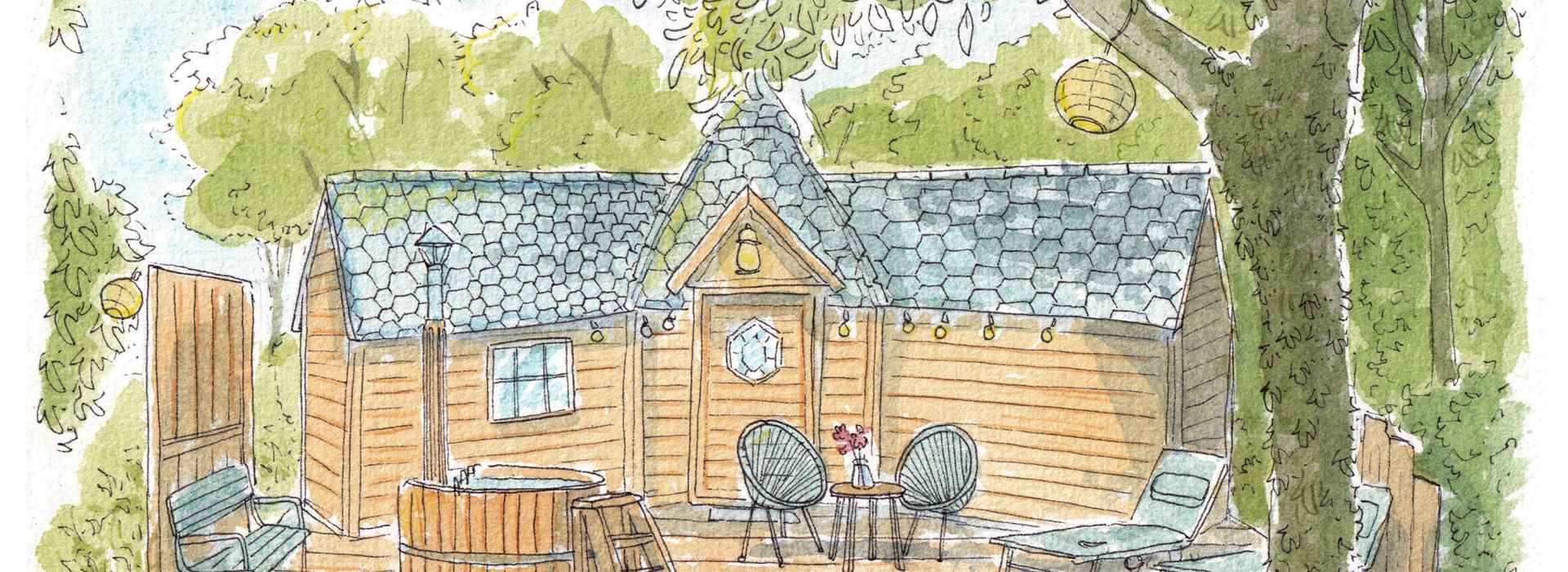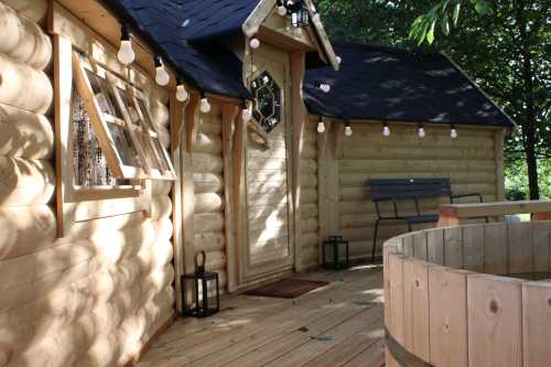 Afin de profiter du cadre verdoyant, la cabane est équipée d'une terrasse. Sous les arbres, vous trouverez des tables, chaises, hamacs, fauteuils et transats pour admirer entre autre, le soleil se coucher sur la Gâtine. Si vous le souhaitez, vous pouvez également réserver un instant bien-être dans un bain nordique, situé à même la terrasse.