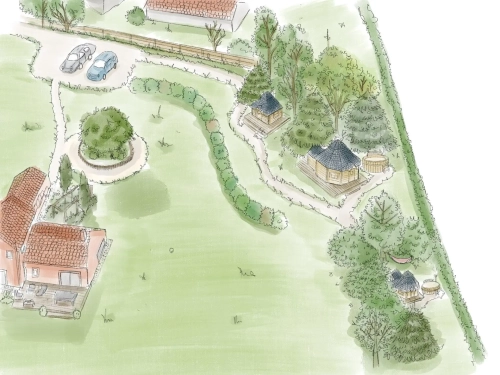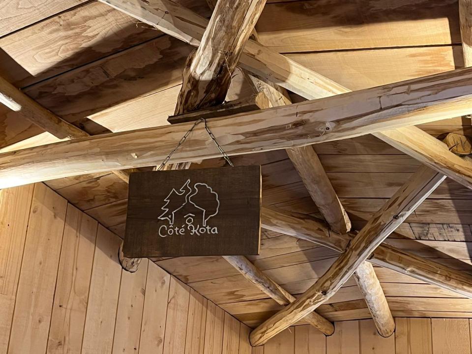 Notre Kota Grill est le fruit d'une belle rencontre avec un artisan local de la Fabric' du Châtaigner afin de créer un lieu sur-mesure. Notre premier souhait était de construire une cabane principalement en bois de pays : le châtaigner. Sa charpente devait être tout aussi exceptionnelle. Pour que vos soirées restent uniques et chaleureuses, un toit réciproque a été imaginé (chevrons placés en appui les uns sur les autres, sans pilier central)