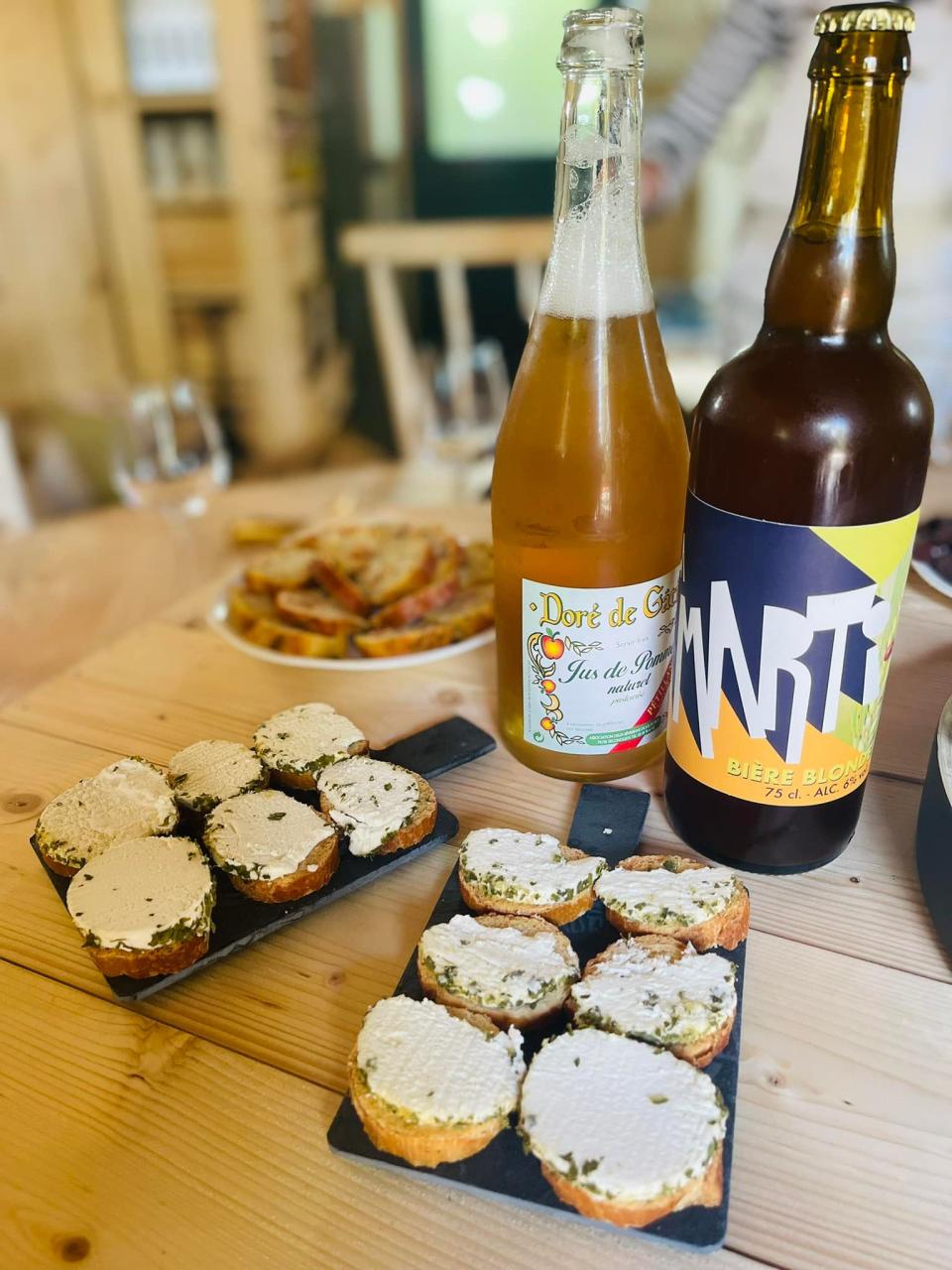 Chaque produit est choisi par nos soins (testés et approuvés, miam) ! Il nous tient à cœur de travailler avec des producteurs locaux issus des villages voisins. Bières, vins, fromages, viandes, miel, pain, beurre, lait, jus de pommes... De quoi découvrir les richesses de notre région et se régaler !
