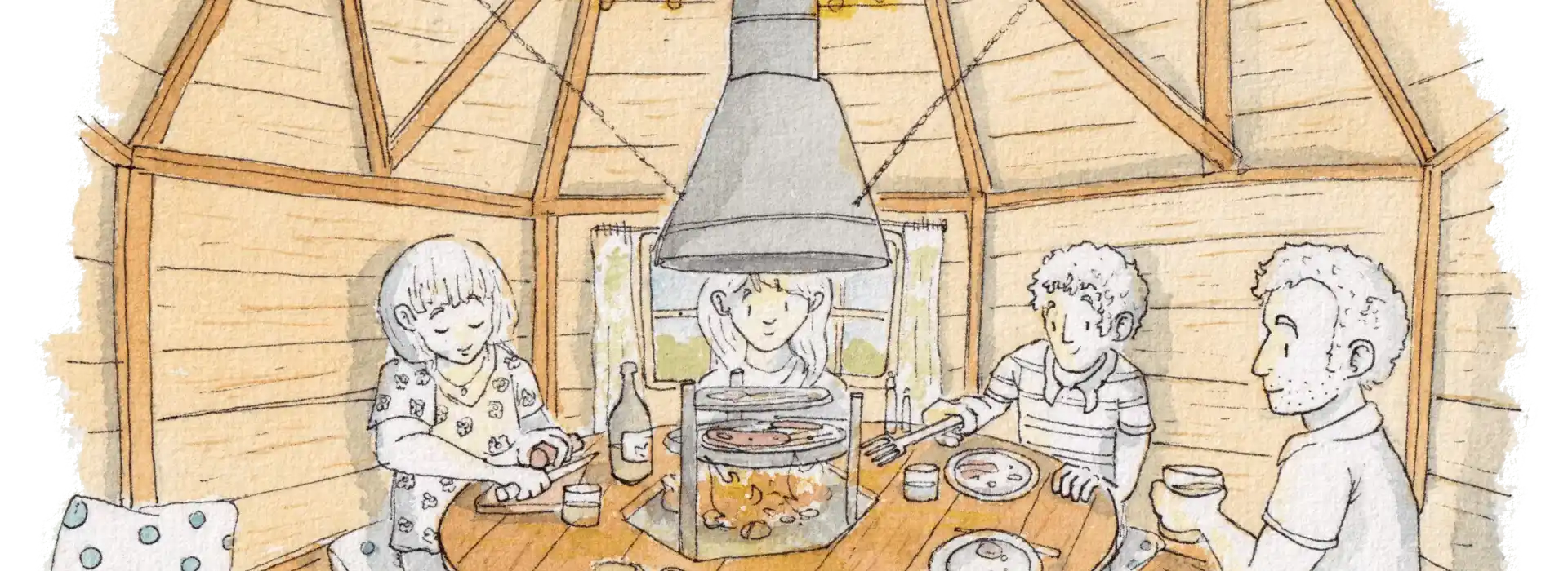Cette charmante hutte en bois vous accueille autour de son grill central pour y déguster des menus aux saveurs locales. En famille ou entre amis, pour un groupe de 4 à 12 personnes, se rassembler autour d'un feu de bois sera l'occasion unique de passer un moment chaleureux. Le couvert sera dressé, le feu allumé... Vous serez accueilli par votre hôte et découvrirez ce lieu atypique ! Pour profitez encore plus de votre soirée, quelques jeux seront à votre disposition.